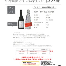 マスヤ鈴木商會です。いつもご活用いただきありがとうございます!表記「龍勢 番外品」が発売されます。※商品代金に送料は含まれておりません。別途送料がかか…